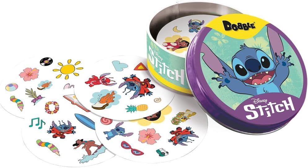 Einfach, lustig und schnell: Dobble ist das ultimative Beobachtungs- und Reaktionsspiel für alle! Finde als Erster das eine übereinstimmende Symbol zwischen zwei Karten, um eine Karte zu gewinnen oder sie loszuwerden. Dobble, bekannt für sein einfaches und dennoch fesselndes Spielprinzip, erhält mit dieser Sonderedition einen bezaubernden Disney-Touch. Mit dem beliebten blauen Alien Stitch und seinen Freunden und Feinden aus den bekannten Filmen entführt dich dieses Spiel direkt ins tropische Hawaii. Die Regeln sind kinderleicht: In jeder Runde werden zwei Karten aufgedeckt, jede mit einer Vielzahl niedlicher Stitch-Motive. Finde als Erster das eine übereinstimmende Symbol zwischen den beiden Karten, rufe es aus und nimm die Karte. Mit seinen leuchtenden Farben, charmanten Illustrationen und vielfältigen Spielvarianten garantiert Dobble Disney Stitch endlosen Spielspaß für die ganze Familie. Dieses Spiel macht nicht nur unglaublich viel Spaß, sondern bietet auch fantastische Vorteile für Spieler jeden Alters: Verbessert Beobachtungsgabe und Reflexe: Dobble Disney Stitch fordert die Spieler heraus, Bilder schnell zu analysieren und zu vergleichen und verbessert so ihre visuelle Wahrnehmung und Reaktionszeit. Fördert soziale Interaktion: Verbringen Sie einen lustigen Spieleabend mit Freunden und Familie – voller Lachen, freundschaftlichem Wettkampf und gemeinsamer Zeit. Fördert Konzentration und Aufmerksamkeit: Das rasante Spieltempo erfordert Aufmerksamkeit und Konzentration und verbessert so die Aufmerksamkeitsspanne. Praktisch und leicht zu lernen: Nehmen Sie den Spielspaß überallhin mit! Dobble Disney Stitch ist kompakt, einfach aufzubauen und perfekt für Reisen, Partys oder eine schnelle Partie zu Hause. Entfesseln Sie Ihren inneren Stitch und tauchen Sie ein in eine Welt voller Spaß mit dem ASMODEE Dobble Disney Stitch Brettspiel. Es ist das perfekte Geschenk für jeden Disney-Fan und ein garantierter Hit für Spieleabende, Partys und Familienfeiern. Spieleranzahl: 2 bis 8 Spieldauer: 15 Minuten Warnung: Nicht geeignet für Kinder unter 3 Jahren wegen verschluckbarer Kleinteile.