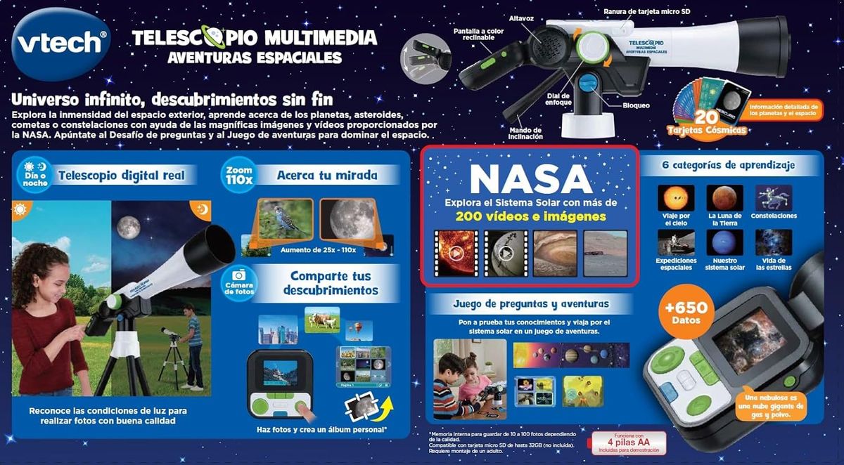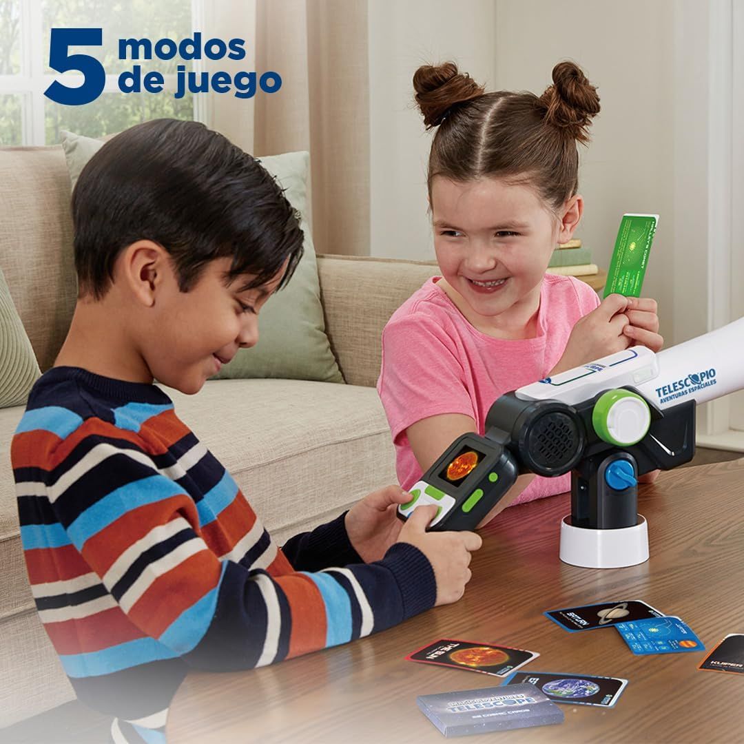 Rebooting Robot! Ein unterhaltsames interplanetares Abenteuer und ein Hüpfspiel, um mehr über das Sonnensystem und seine Planeten zu erfahren. ... Herausforderungsmodus: Testen Sie Ihr Wissen über Teleskope mit einem unterhaltsamen Quizspiel in drei Schwierigkeitsstufen. Das Set enthält 20 Weltraumkarten und eine Aufbewahrungsbox. Auf der einen Seite befinden sich detaillierte Abbildungen von Himmelskörpern, auf der anderen spannende Fakten über den Weltraum. Sie können die Bildschirmhelligkeit, die Teleskopposition, die Verschlusszeiten und den Tag-/Nachtmodus des Teleskops anpassen. Das Set ist einfach aufzubauen und enthält alles, was Sie zum Erkunden und Spielen benötigen. Es verfügt über ein abnehmbares Stativ, ein Teleskop mit Fokussierer und Objektivdeckel, ein Fokussierrad, eine Nivellierkurbel, einen Einstellstift für den Betrachtungswinkel, einen microSD-Kartensteckplatz (Karte nicht enthalten) und einen verstellbaren Farb-LCD-Bildschirm mit Zoom- und interaktiven Spieltasten. Der Bildschirm zeigt Videos, Sprachausgabe und mehrere Bilder an. Er umfasst 6 Hauptkategorien, 30 Unterkategorien und über 650 umfassende Fakten über den Kosmos in verschiedenen Formaten (Videos, Grafiken, Querschnitte, Karten usw.). Der Bildschirm ist verstellbar und verfügt über einen Richtungscursor, Zoom-Tasten, eine Schnellzugriffstaste für den Teleskopmodus, eine Bestätigungstaste sowie Home-, Hilfe- und Zurück-Tasten. Zeigt eine einfache visuelle Anleitung auf dem Bildschirm, um die Bedienung des Teleskops in wenigen Schritten zu erlernen. Über das Elternmenü kann der Gerätespeicher bei Bedarf zurückgesetzt werden. Fotos können direkt vom Teleskop auf eine microSD-Karte mit bis zu 32 GB (nicht im Lieferumfang enthalten) übertragen werden, die Platz für bis zu 30.086 Fotos bietet. Lautstärkeregelung und automatische Abschaltung sind ebenfalls vorhanden. Das Teleskop trägt das Gütesiegel der Toy Association™ für die MINT-Fächer (Mathematik, Informatik, Naturwissenschaften und Technik). Empfohlenes Alter: ab 7 Jahren. ...